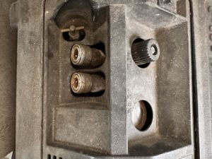 写真にある取り付け口の上の取っ手を左に回すとコンプレッサーの中にあるガス管の中から空気が抜けます。