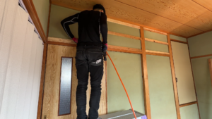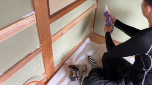 もしそのまま下地を貼るとなってしまうと、最終的なクロス貼りの部分で、浮き出ていたり、凹んでたりと仕上がりに雑さが出てしまいます。