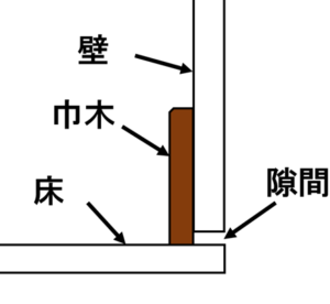 巾木というのは壁と床の取り合い部分につける部材のことをいいます。