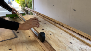 次に測った長さ通りに木材に印をつけていきます。