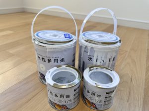 今回塗っていく色は部屋作りのコンセプトにのっとってシンプルに『白』のペンキで塗っていこうと思います。