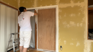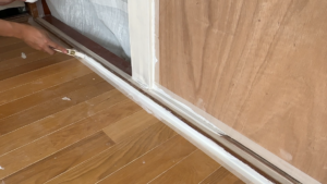 ドア枠を全体的に白く塗っていきます。